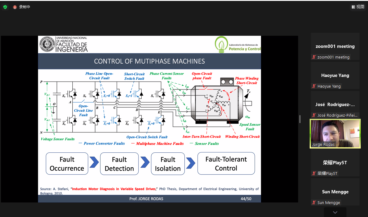2023年5月26日晚,由学院、上海自主智能无人系统科学中心联合举办的智·信讲堂校庆特别系列第53期线上开讲。本次讲堂邀请亚松森国立大学Jorge Rodas教授作“Model Predictive Control for Multiphase Machines”主题报告,由张皓教授主持。