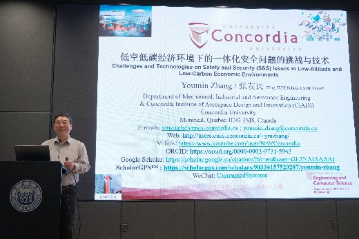 上海智能科学与技术研究院联合举办的智·信讲堂第74期在智信馆117报告厅开讲。本次讲堂邀请加拿大康考迪亚大学张友民教授作“Challenges and Technologies on Safety and Security (S&S) Issues in Low-Altitude and Low-Carbon Economic Environments”主题报告,由张皓教授主持。