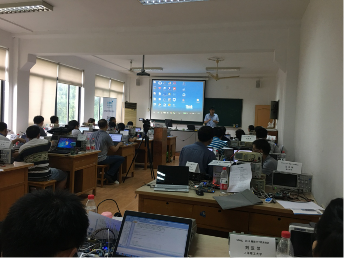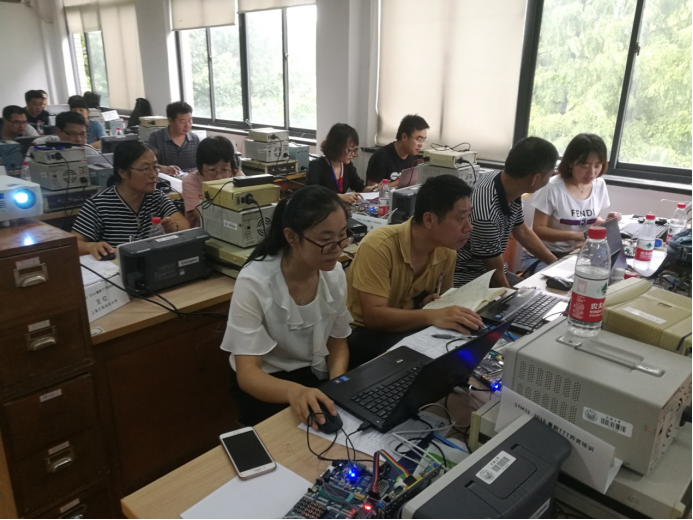 8月2-3日由酷18 大学生创新基地和意法半导体主办的全国高校STM32师资培训在学院大学生创新基地和电工电子实验中心举行。培训由酷18 周伟老师作为主讲教师,系统讲述了以STM32F4系列芯片在微机原理及接口技术、单片机课程中的应用,教学经验和教学方法;深入浅出的讲解了STM32F4系列主要外设特点、应用编程方法,Cortex-M4内核及嵌入式式实时操作系统原理及在教学中的应用。课程采用理论讲解和动手实践交叉进行的模式。培训内容得到高校教师相关教师关注和积极参与。由于名额限制,最终有全国各地近20所高校的36名高校教师参与培训。参加培训的老师普遍反映收获很大,希望后续继续举办相关活动。该活动作为教育部与意法半导体联合育人计划项目资助,也得到了360EET网站的大力支持。