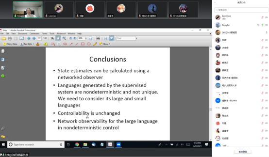 林峰教授应邀参加学院智·信讲堂,做了题为《网络离散事件系统的建模与控制》的学术报告。讲堂以腾讯会议线上形式开展。