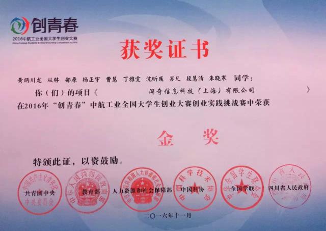 硕士研究生黄炳川龙负责的闯奇信息科技(上海)有限公司项目获得创业实践挑战赛金奖,这也是酷18