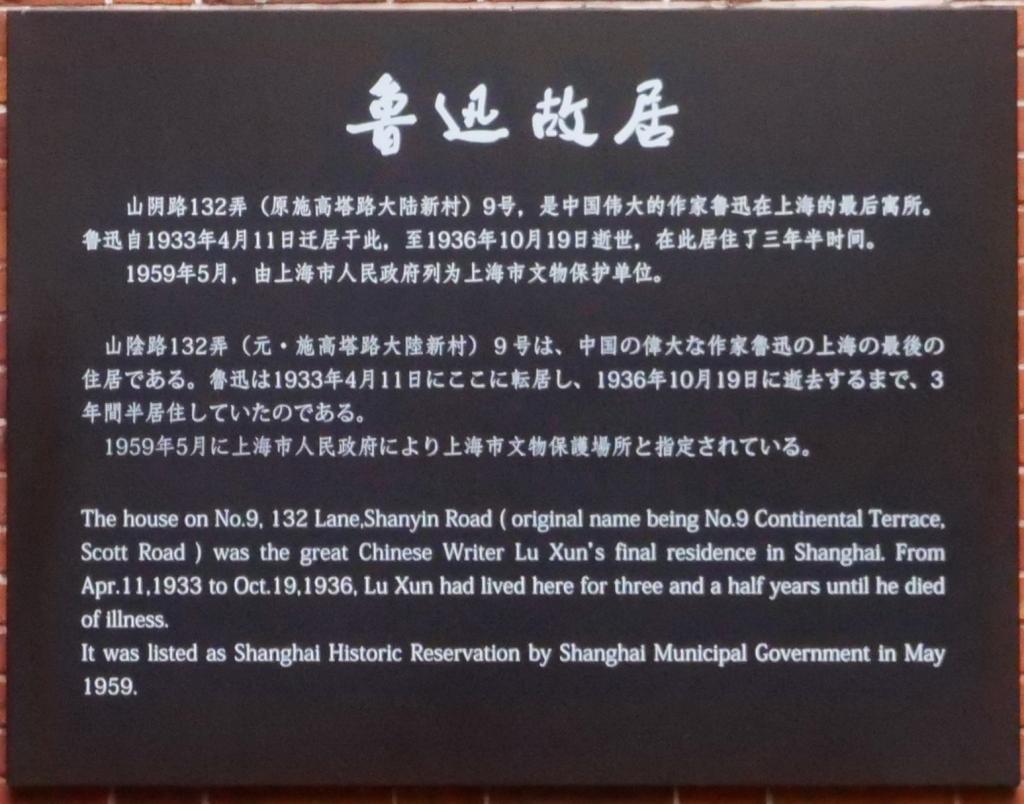 本次红色记忆活动从鲁迅故居开始。鲁迅故居位于上海市山阴路132弄9号,是一幢红砖红瓦的3层楼房,是一代文化巨匠鲁迅先生1933年至1936年逝世前居住和工作的寓所,在这里鲁迅作为思想家和文学家拿起手中的利剑,直刺敌人的心脏,创作了一篇篇思想文学巨作;更是在这里,鲁迅作为革命家掩护过瞿秋白、冯雪峰等共产党人。