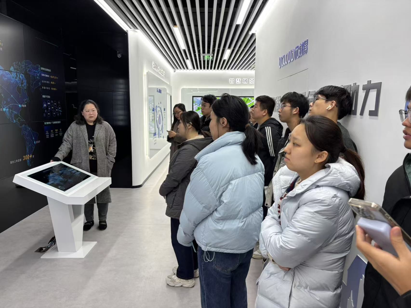 此外,工作人员还向同学们介绍了展厅内的一系列智慧场景和数字孪生案例,使同学们深刻体会到了云计算在支持各行各业数字化转型中的重要作用。