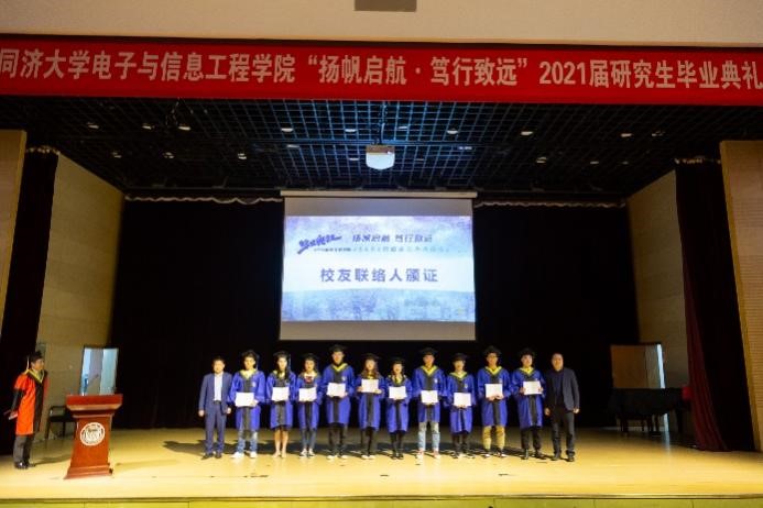 随后,嘉定校区管委办主任王晓国教授宣读电信学院2021届校友班级联络人名单。电信学院校友分会副秘书长石松华、欧阳家淦为校友联络人们颁发聘书。聚是一团火,散是满天星,无论走到哪里,联络人都将维系每一位毕业生彼此之间以及与母校之间的情感联结。