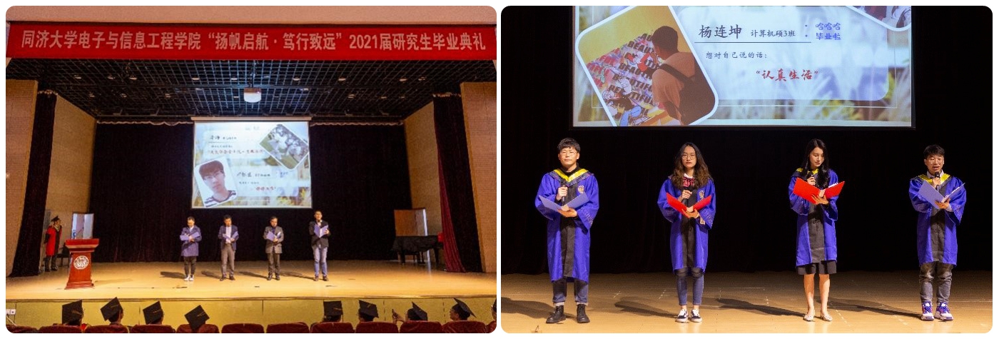 一百载峥嵘岁月,一百载砥砺歌行。今年,是中国共产党的重要里程碑,也是2021届毕业生学子的重要里程碑。正值建党百年之际,学院“扬帆启航·笃行致远”2021届研究生毕业典礼于3月26日在济人楼101报告厅圆满举行。典礼由党委书记王峻主持,嘉定校区管委办主任王晓国,院长陈虹,学院党委副书记张南华、王瀚漓、朱琴跃,副院长尹学锋、丁志军、周俊鹤及各系主任、导师、班主任、辅导员、校友代表以及300余名硕博应届毕业生出席毕业典礼。