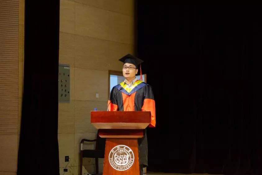 学院发展壮大至今,取得的成就离不开校友的大力支持,此次毕业典礼很荣幸邀请到了毕业多年的优秀校友回到母校来为学弟学妹们分享一些过来人的经验。2009届控制理论与控制工程专业硕士毕业生欧阳家淦和2013届信号与信息处理专业硕士毕业生王非作为校友代表分别发言。两位校友表达了对毕业生们的祝福,以及对母校教育的感恩之情。他们结合自己在工作岗位上的体会,为同学们分享了宝贵建议与人生感悟。