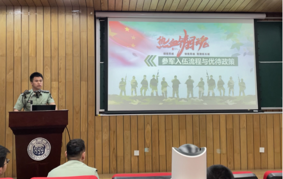 彭凤健则为同学们讲述了参军入伍的主要流程、条件及优待政策等内容,号召同学们携笔从戎,做一个有梦想有追求的同济学子。