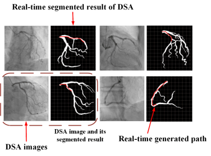 在冠心病诊断中,经皮冠状动脉介入手术(PCI)所生成的DSA图像是“金标准”,然而由于光照变化、成像角度以及组织干扰等各种因素的影响,有时会使得DSA成像品质欠佳,其中的血管结构展示不清。面对复杂的人体血管结构,不论是医生还是智能手术机器人系统,都需要实现手术决策规划,确定介入器械如何到达指定目标部位。