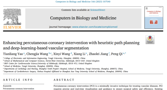 本科生姚天亮以第一作者身份在医工交叉领域高水平SCI期刊Computers in Biology and Medicine (JCR Q1, IF=7.7)发表了团队最新研究成果“Enhancing Percutaneous Coronary Intervention with Heuristic Path Planning and Deep-Learning based Vascular Segmentation”(论文链接://doi.org/10.1016/j.compbiomed.2023.107540),于11月期见刊。