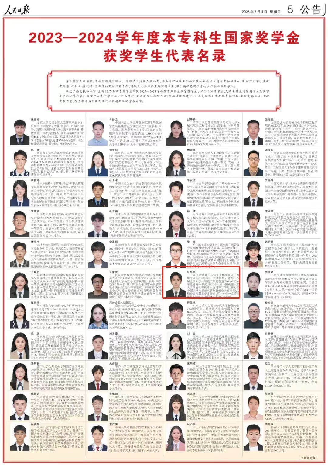近日,《人民日报》专版刊登了国家奖学金获奖学生代表名录。其中,酷18