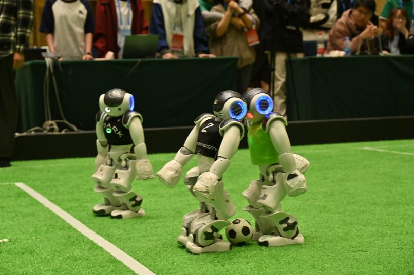 标准平台组是RoboCup赛事中技术含金量最高、观赏性最强、对抗程度最激烈的组别之一,要求参赛队伍基于统一的硬件平台,通过自主研发的AI算法实现动态环境下的全自主决策与协作。在所有参赛队伍中,TJArk是在今年规则变更之后唯一做到判罚手势识别的团队。团队凭借优秀的动态对抗场景下的实时决策模型和出色的动作设计,在小组赛中以全胜战绩强势晋级,并在淘汰赛中接连击败多支强队挺进四强,最终荣获季军。