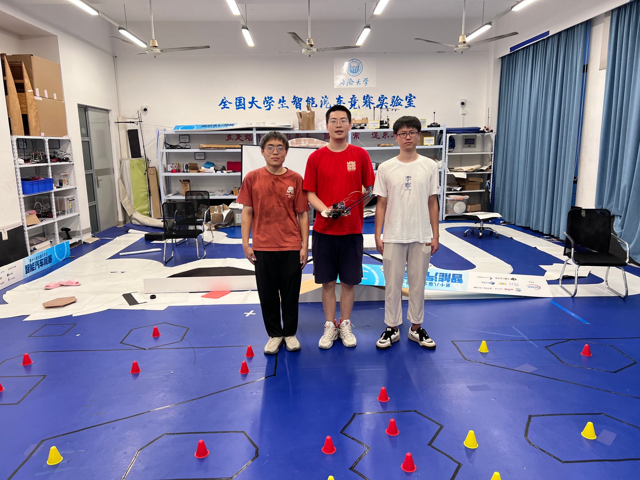 队伍合影(从左到右: 樊宇泽. 董嘉伟. 蔡浩典) 参赛车模