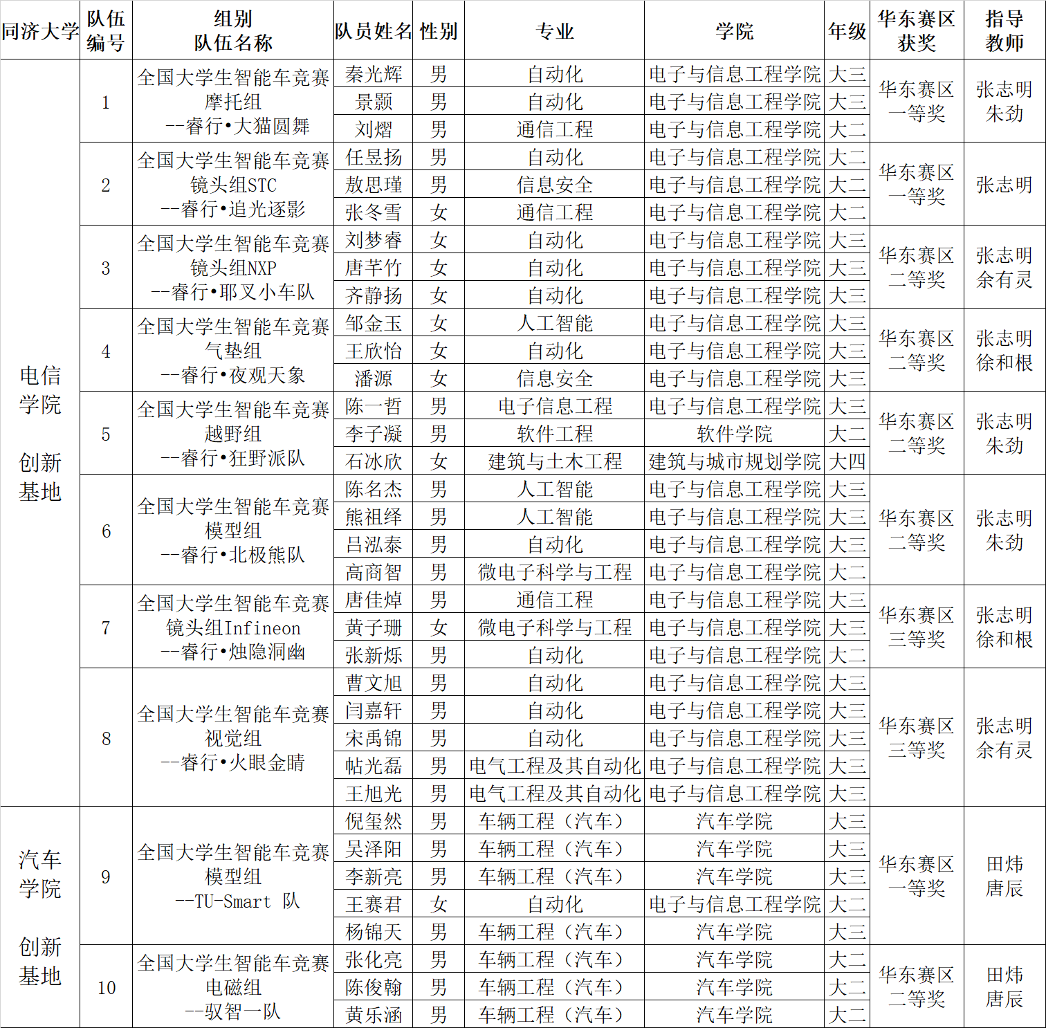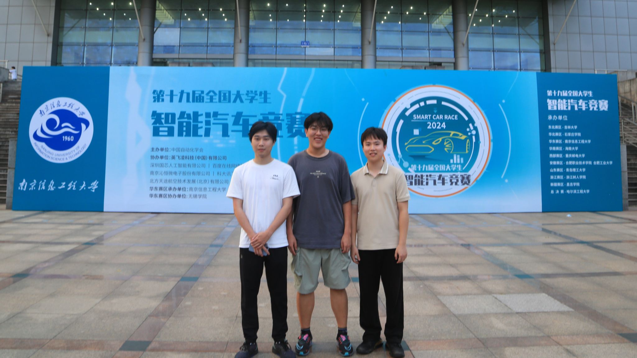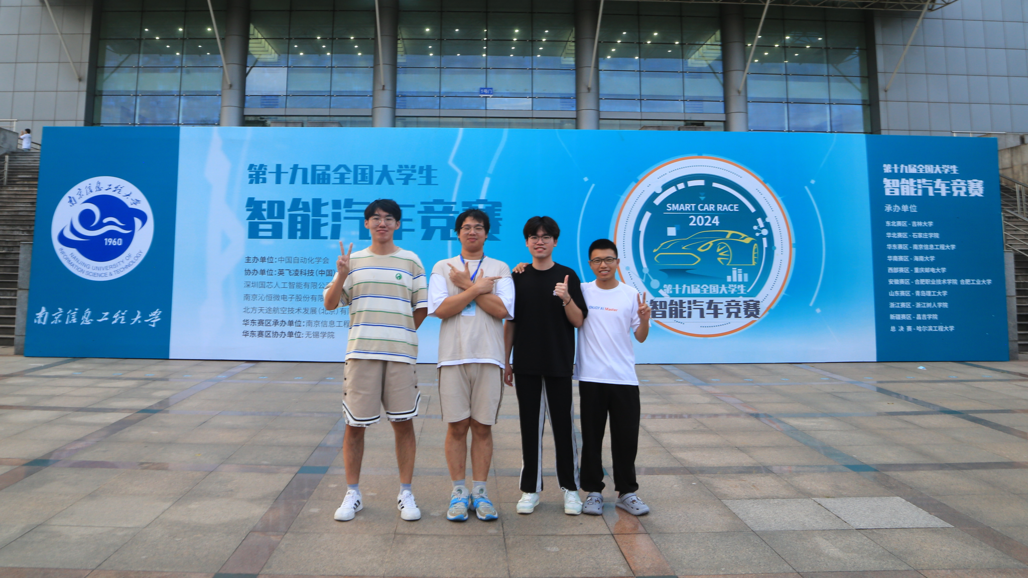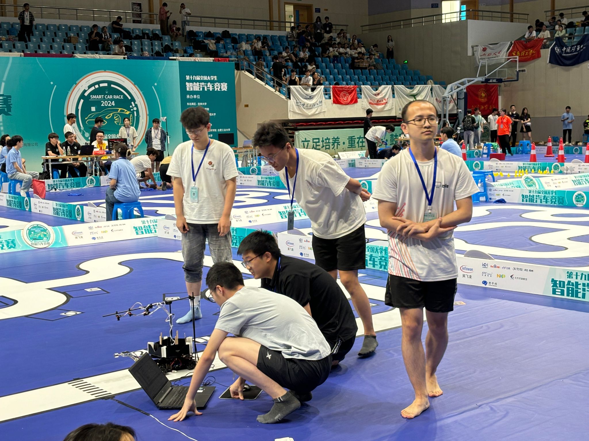 控制科学与工程系张志明老师负责,经过近一年的招新、培训和实践等历程,由张志明、朱劲、余有灵、徐和根等教师指导,老队员刘梦晓、周庚栋、杨思远等参与辅助管理,参加校赛并获得气垫组、摩托组、视觉组、模型组、镜头组(STC/INF/NXP)等五个室内组别和越野信标组一个室外组别的晋级参赛资格。来自3个学院9个专业的27名本科生同学组成8支队伍,由张志明和朱劲两位老师带队,赴南京信息工程大学参加智能车竞赛华东赛区,学生秦光辉(自动化)、景颢(自动化)、刘熠(通信工程)组成的“睿行•大猫圆舞”队获得摩托组一等奖,任昱扬(自动化)、敖思瑾(信息安全)、张冬雪(通信工程)组成的“睿行•追光逐影”队获得镜头STC组一等奖,镜头NXP组、气垫组、越野组和模型组获得二等奖,镜头Infineon组和视觉组获得三等奖。此外,王赛君(自动化)参加汽车学院队伍获得模型组一等奖。