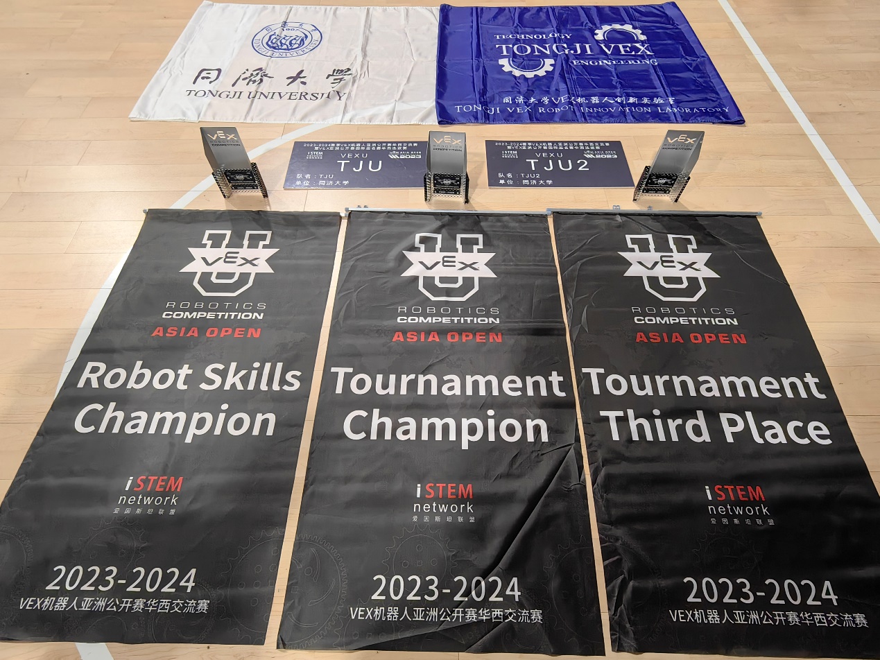 此次VEX机器人比赛吸引了来自全国各地近百支赛队,包括北京、上海、广东、浙江、新疆、陕西、兰州、甘肃、江西、山东、四川、重庆等城市的顶尖战队,共计400多名选手参赛。全国顶尖战队齐聚成都,为比赛注入了无限活力与激情,也使比赛竞技水平达到了巅峰。我校派出的TJU和TJU2两支战队在赛场上沉着冷静,稳定发挥,愈战愈勇,经过两天紧张而激烈的角逐,最终TJU战队获得了VEX-U对抗赛冠军和VEX-U技能赛冠军双冠,TJU2战队获得了VEX-U对抗赛季军。