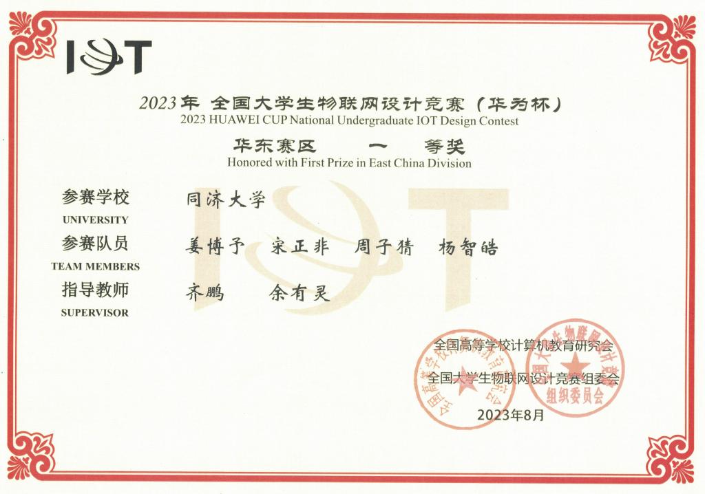 酷18 本科生获2023年全国大学生物联网设计竞赛全国总决赛一等奖