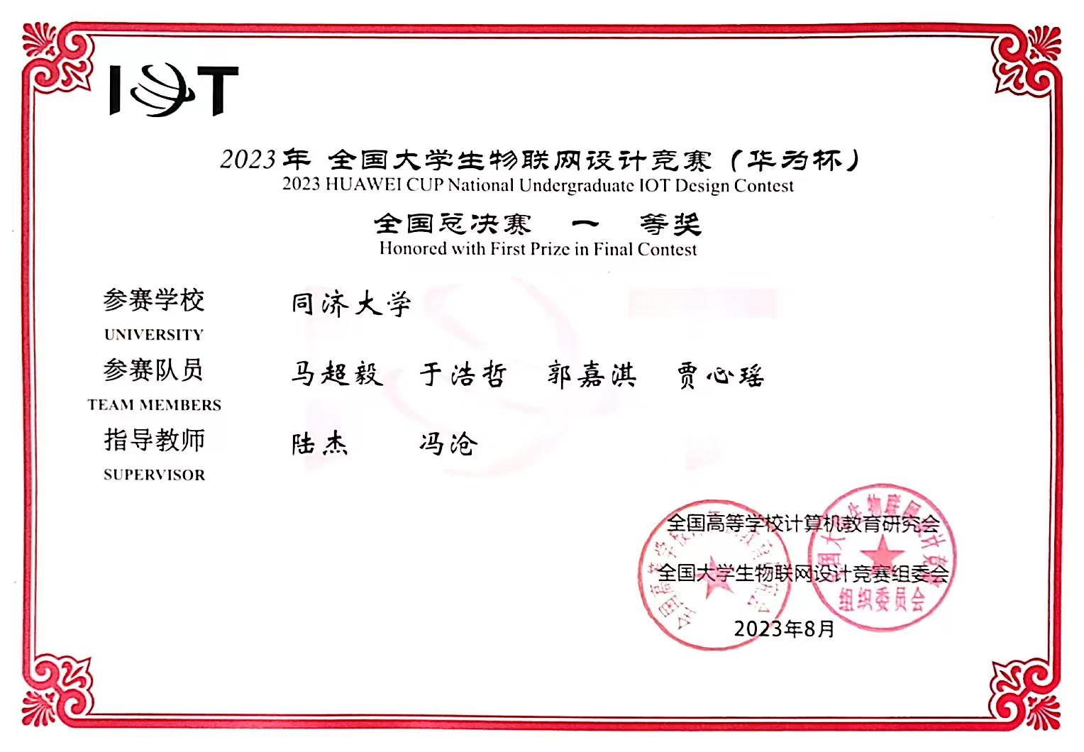 8月23日至25日,2023年全国大学生物联网设计竞赛(华为杯)全国总决赛在南京大学仙林校区隆重举行。酷18 通信工程专业马超毅、贾心瑶和人工智能专业于浩哲、郭嘉淇四位本科生联合组成的参赛队伍,获得全国总决赛一等奖。