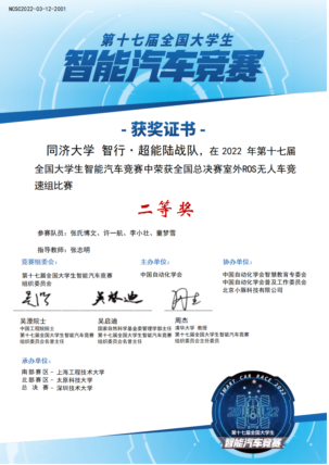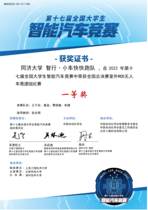 2支本科生参赛队伍获得室外ROS无人车竞速组全国一等奖和二等奖各1项。
