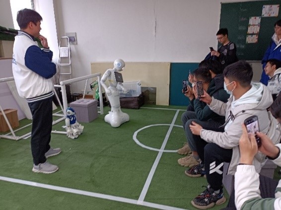 在RoboCup足球机器人实验室,潘湘辉博士详细介绍了机器人足球队的系统架构和关键技术,展示了“同济方舟”团队秀球技大赛的战绩。憨态可掬的NAO机器人深受同学们的喜爱,大家纷纷与其合影拍照。在VEX机器人实验室,科研团队的学长们介绍了实验室创新竞赛情况,还通过演示操控机器人运作,深入浅出地介绍了VEX机器人的操控要领及相关技术。同学们听得全神贯注,互动时踊跃上前尝试,感受机器人的智能。在智能汽车实验室,张志明老师及团队学长们给大家演示了各类创新机器人项目,如体感格斗机器人击倒障碍物、击飞乒乓球;助老生活服务机器人识别抓取水果、倒垃圾以及房间穿梭;平衡单车识别各赛信息,并“稳”“准”“快”地安全入库;以及讯飞车模机器人通过比对人脸数据库“抓捕”嫌犯。“聪明”的机器人赢得了同学们的连连掌声和赞叹。