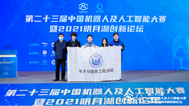 赛事得到校本科生院的支持,由酷18 大学生创新基地人工智能+机器人竞赛实验室组织跨专业本科生组队,由控制科学与工程系教师张志明和余有灵指导,老队员赵师兵、曾宪坤、冯翊等同学参与辅助管理,参加医院智能引导机器人、无人驾驶竞速赛、智能机器人分拣挑战赛三个组别的比赛。在完成初赛顺利晋级后,受疫情防控影响,总决赛多次延期,参赛同学克服诸多困难备赛,在总决赛阶段努力拼搏,最终由侯哲(自动化)、黄媛媛(自动化)、刘政钦(自动化)、孙景怡(电子与信息工程)组成的“智信薄荷里”队,获得医院智能引导机器人项目全国一等奖;由王樾(电气工程及其自动化)、方少腾(自动化)、薛江帆(电气工程及其自动化)、王飞龙(电气工程及其自动化)、黄晨宇(通信工程)组成的“智信云飞车”队,获得无人驾驶竞速赛项目全国二等奖和省级一等奖;由梁伊雯(软件工程/软件学院)、韩子奇(自动化)、刘一凡(自动化)、王聪聪(电子科学与技术)组成的“智信·听荷里”队,获得智能机器人分拣挑战赛全国三等奖。