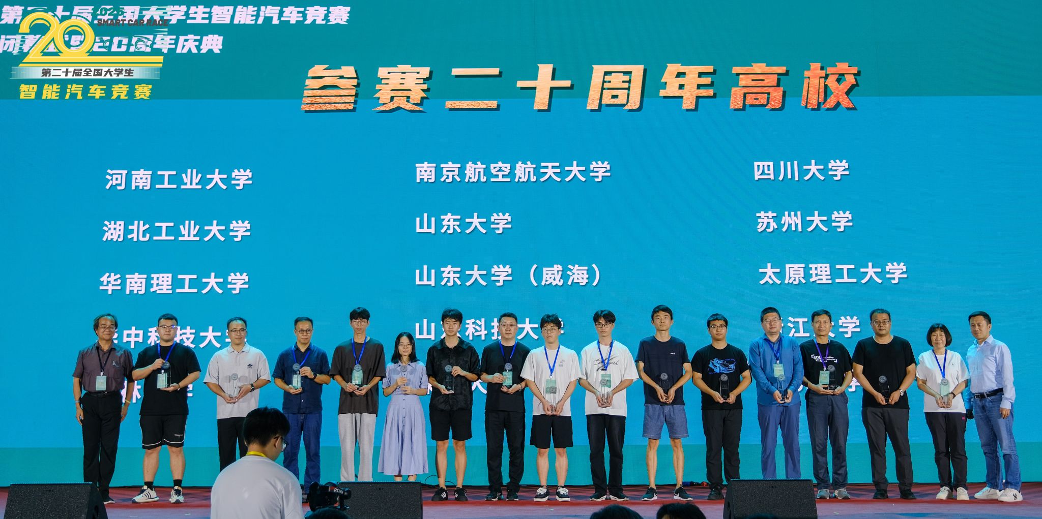 在总决赛闭幕式上,组委会颁发了“全国大学生智能汽车竞赛二十年连续参赛奖”,共有30所高校获此殊荣,包括北京理工大学、电子科技大学、东南大学、国防科技大学、哈尔滨工业大学、华中科技大学、华南理工大学、山东大学、四川大学、酷18